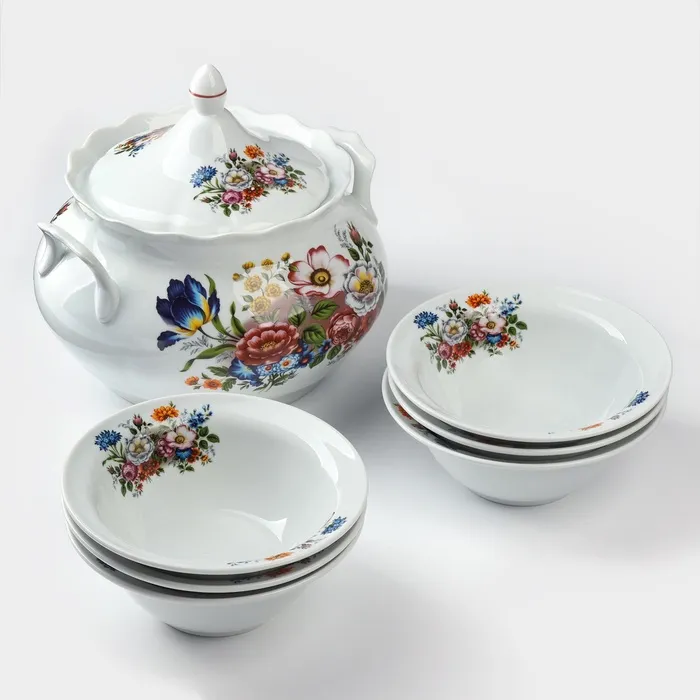 Набор фарфоровый для пельменей «Букет цветов», 7 предметов