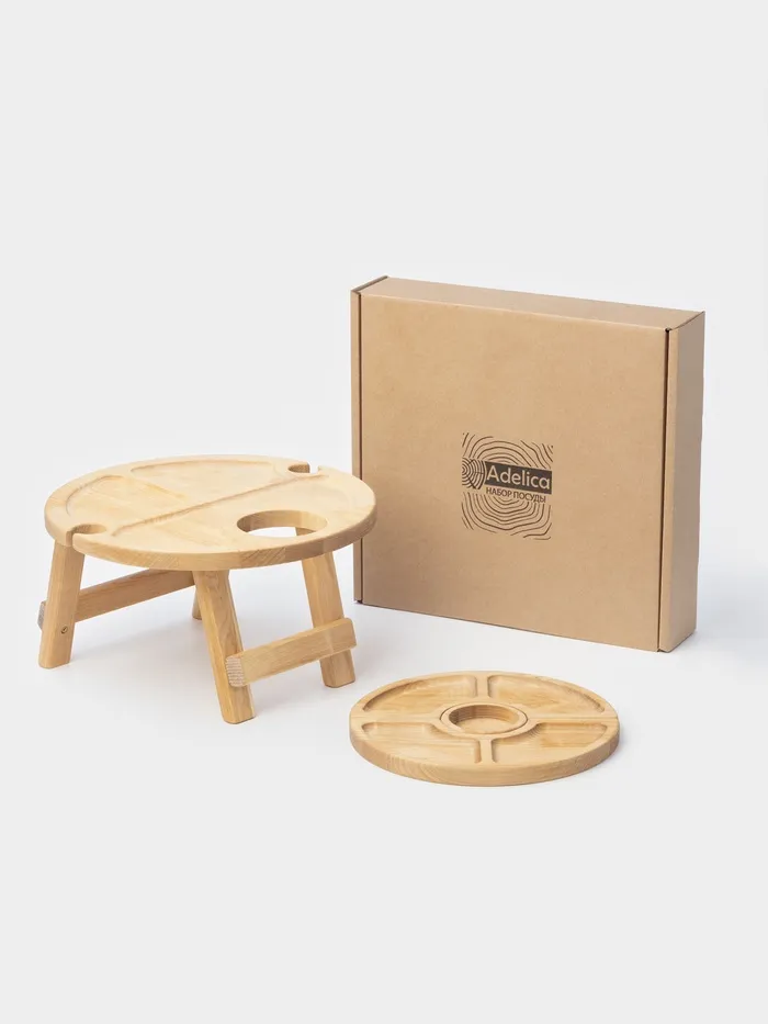 Подарочный набор деревянной посуды Adelica «Винный», столик для вина d=32 см, менажница d=25 см, подсвечник d=8 см, берёза