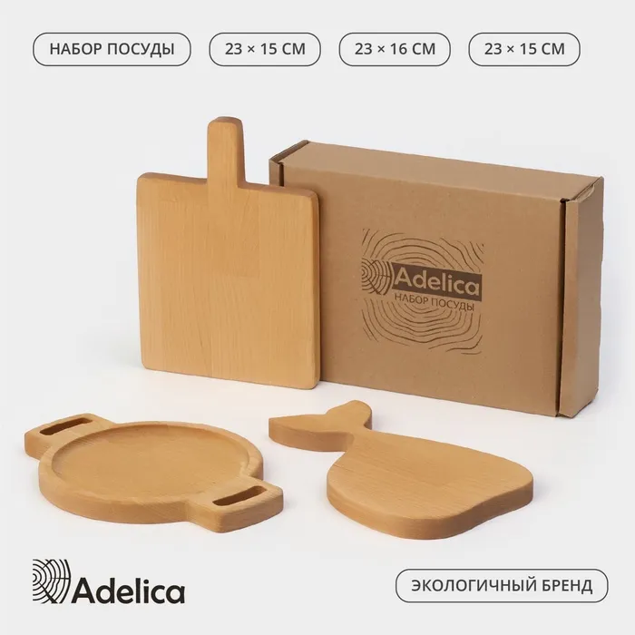 Подарочный набор деревянной посуды Adelica, доски разделочные, для подачи, берёза