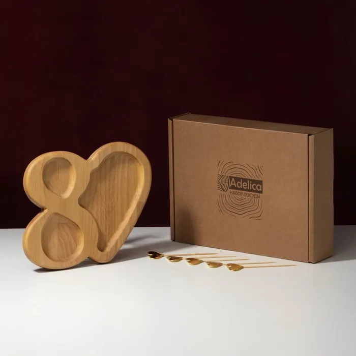 Менажница деревянная «Бесконечная любовь», берёза, в подарочной коробке, в подарок набор шпажек