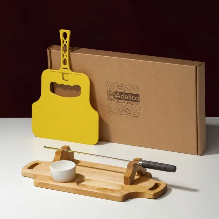 Подарочный деервянный набор для подачи шашлыка Adelica, доска - тарелка 40×18×5.5 см, шампур 1 шт., опахало, соусник, берёза