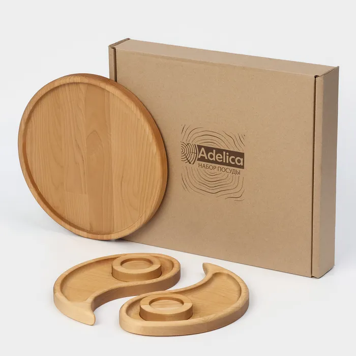 Подарочный набор деревянной посуды Adelica «Инь-янь», менажница 2 шт, поднос, подсвечник 2 шт, берёза