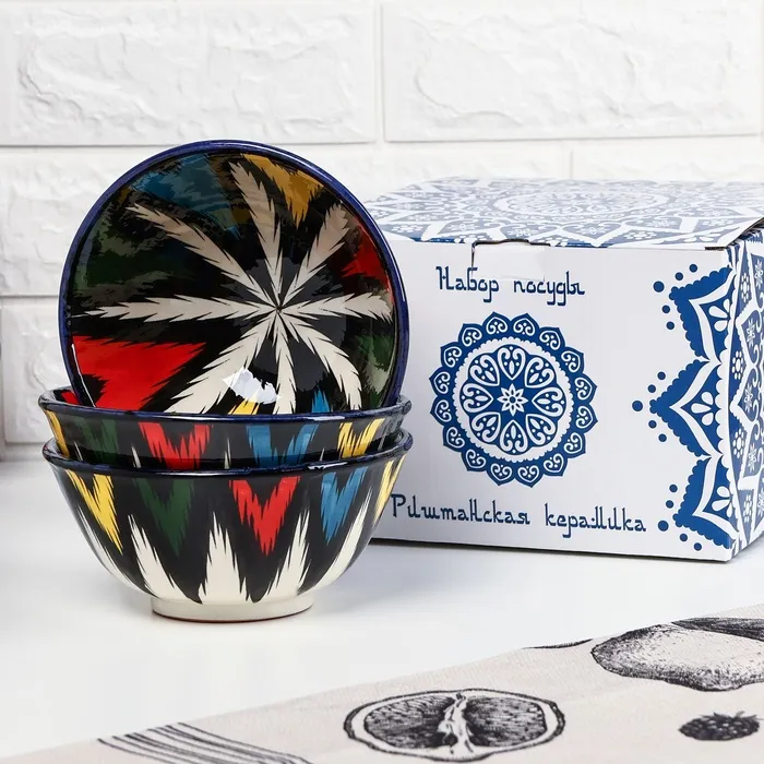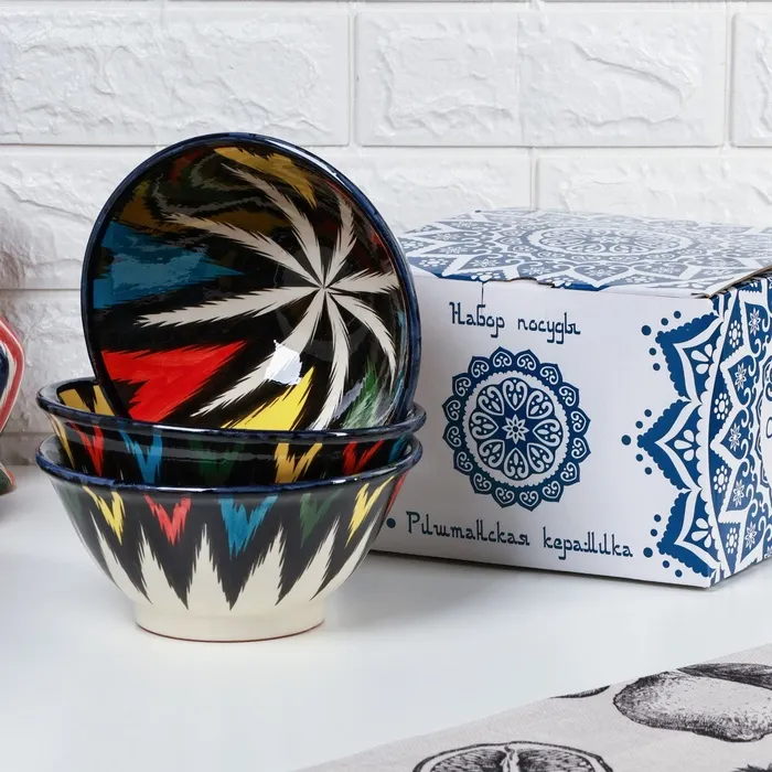 Набор салатников Риштанская керамика "Атлас", 15 см, 3 шт, в подарочной упаковке