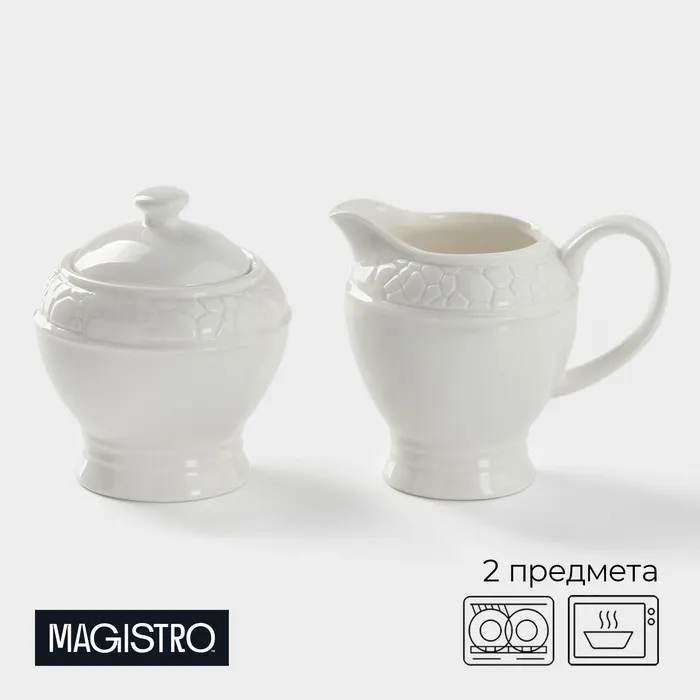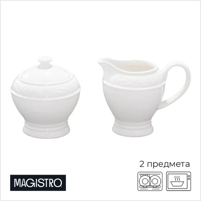 Набор сервировочный Magistro Crotone, 2 предмета: молочник 300 мл, сахарница 300 мл, фарфор, белый