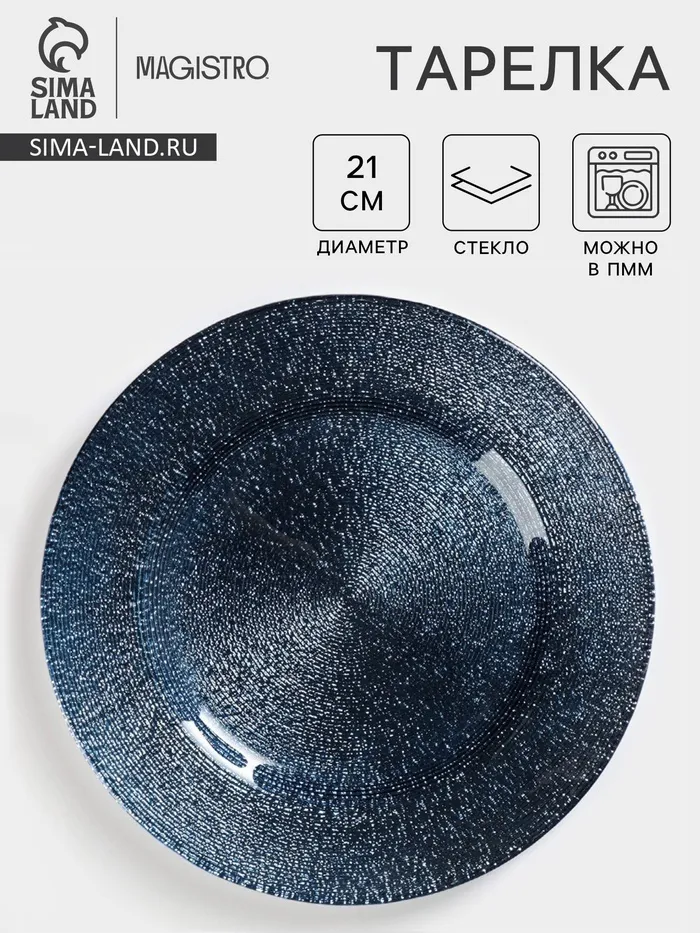 Тарелка Magistro «Карамель. Синее серебро», d=21 см, стекло, синяя