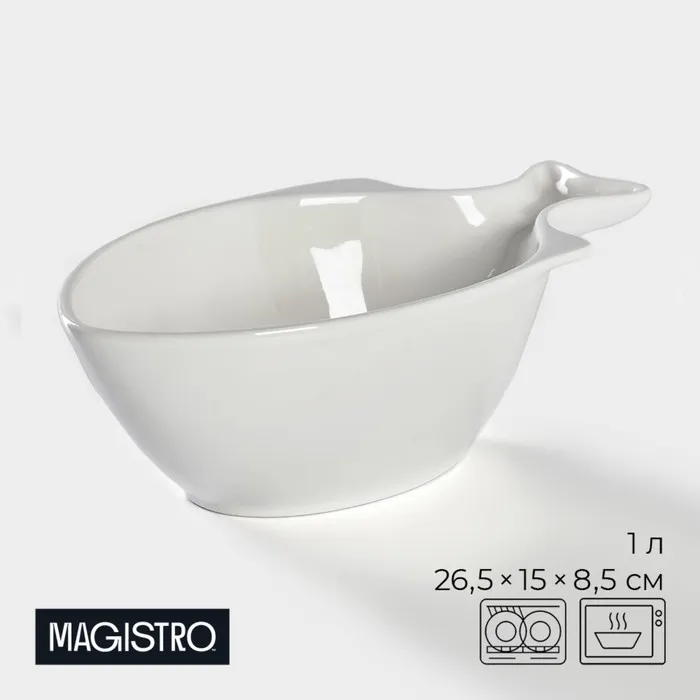 Салатник Magistro «Рыбка», 1 л, 26.5×15×8.5 см, фарфор, белый