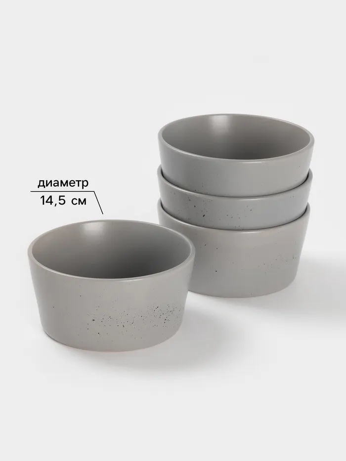 Набор салатников Доляна «Гранит», 4 шт., 800 мл, 14.5×7 см, керамика, серый