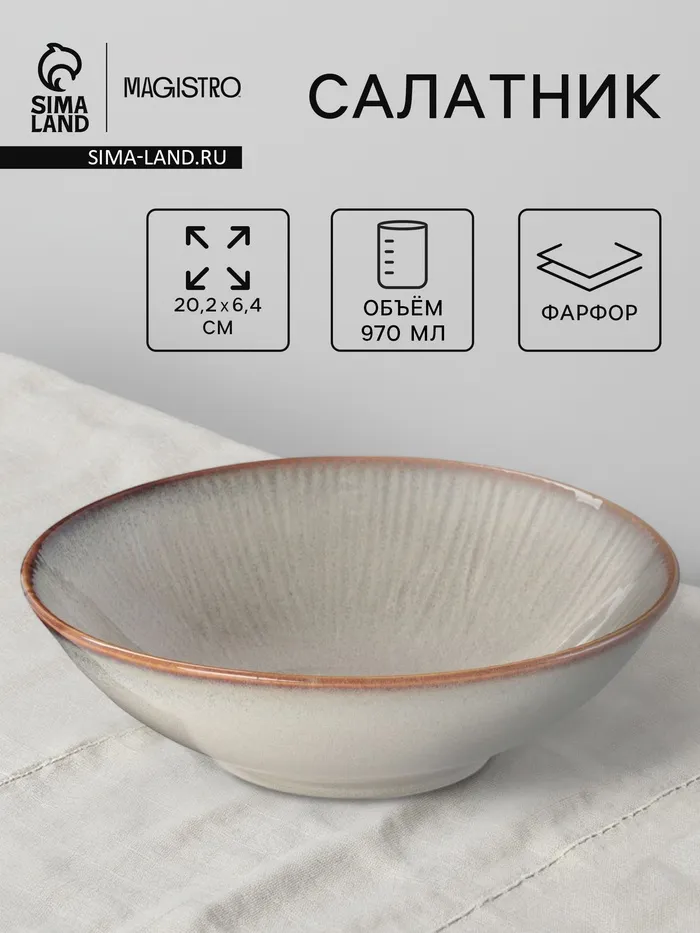 Салатник Magistro Astral, 790 мл, d=20.2 см, фарфор, серый