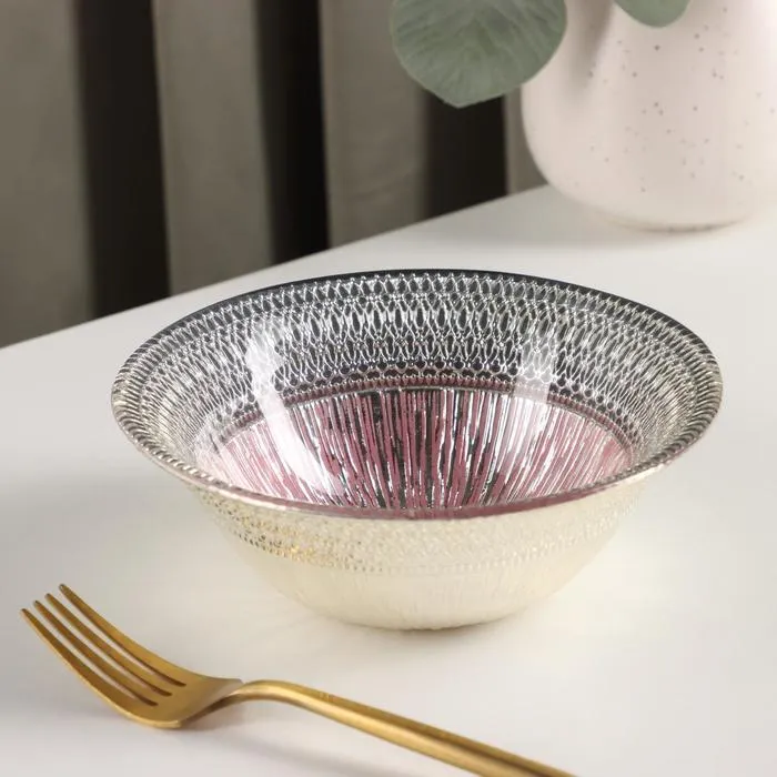 Салатник «Морион», 450 мл, d=16 см, стекло, розовый с серебром