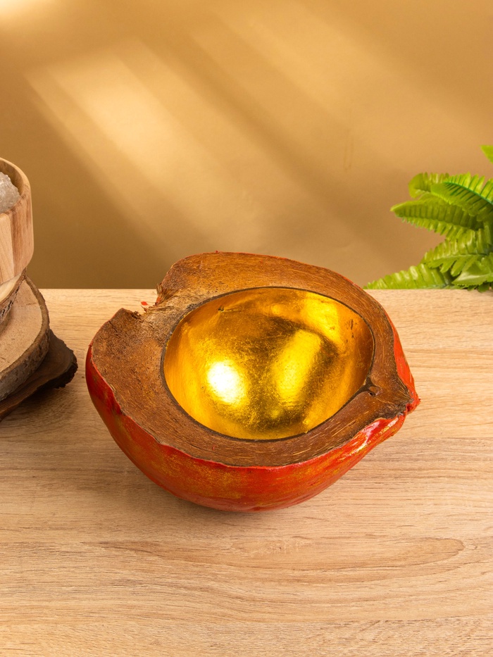 Чаша из кокоса, 24×22×10 см, красно-золотая