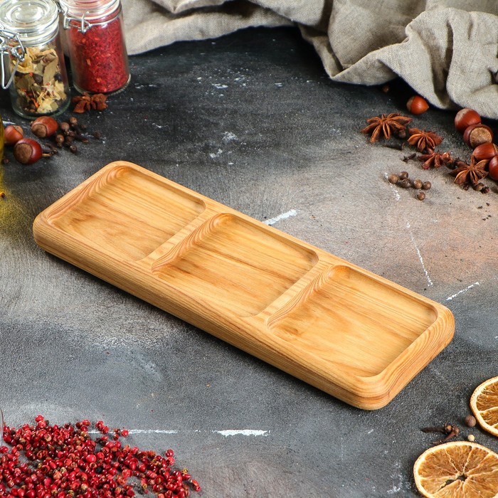 Менажница Доброе дерево, 3 секции, 30×10 см, массив ясеня