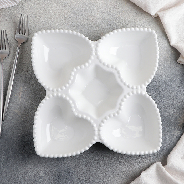 Менажница «Сердца», 5 секций, 25×5 см, керамика, белая