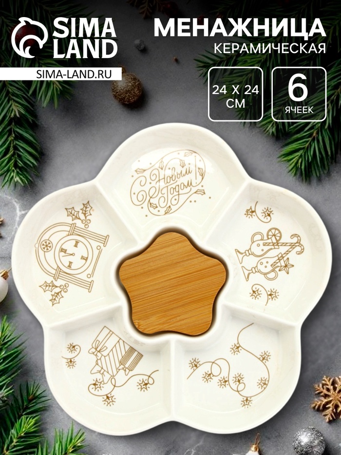 Менажница новогодняя «С Новым годом», 24 см, 6 ячеек