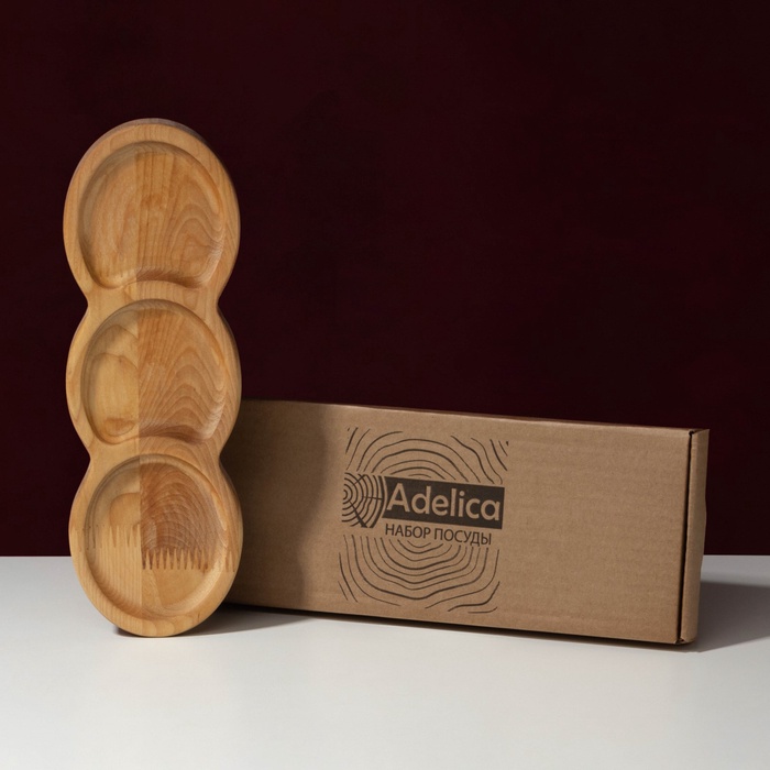 Менажница деревянная Adelica «Светофор», 3 секции, 30×10×1.8 см, пропитана минеральным маслом, в подарочной коробке, берёза