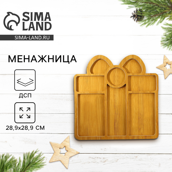 Менажница деревянная новогодняя «Подарок», 28.9×28.9 см