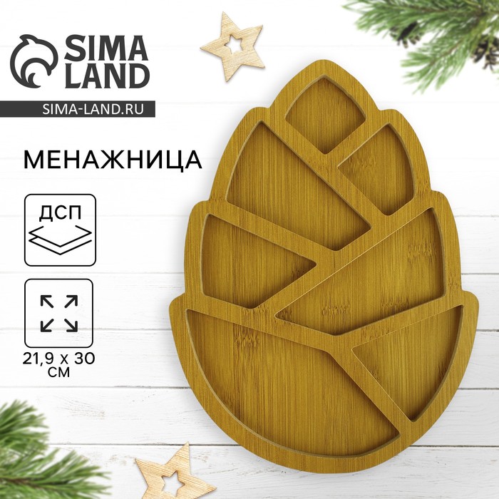 Менажница деревянная новогодняя «Шишка», 21.9×30 см
