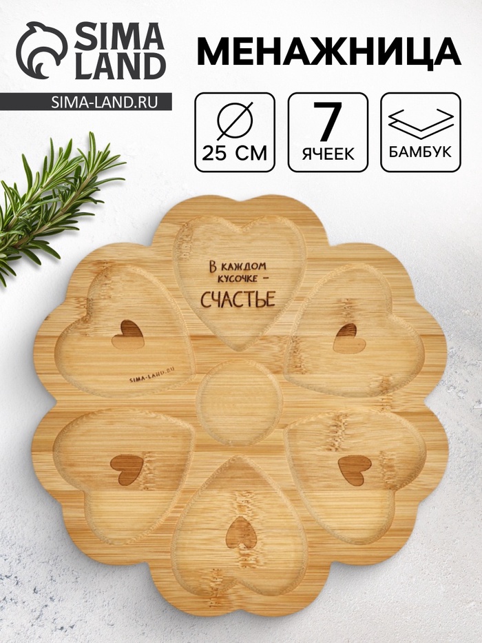 Менажница «Любовь», из бамбука, 25 см