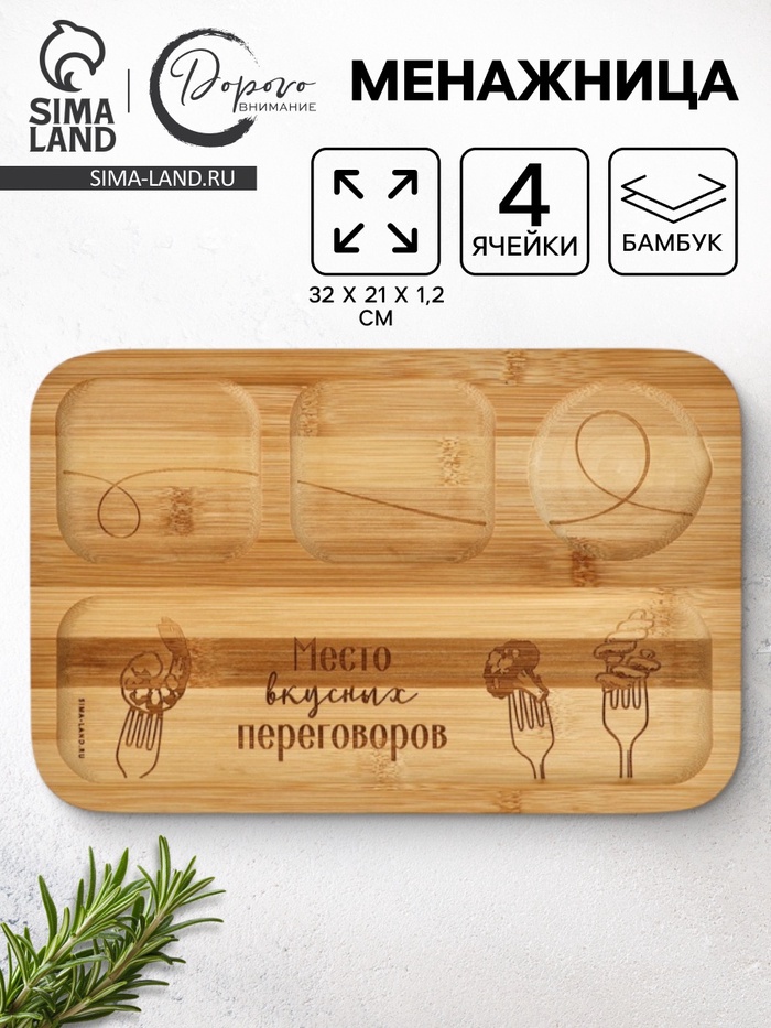 Менажница «Вилочки», 32×21×1.2 см, бамбук