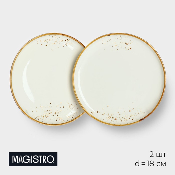 Набор тарелок десертных Magistro «Церера», 2 шт., d=18 см, фарфор, белые
