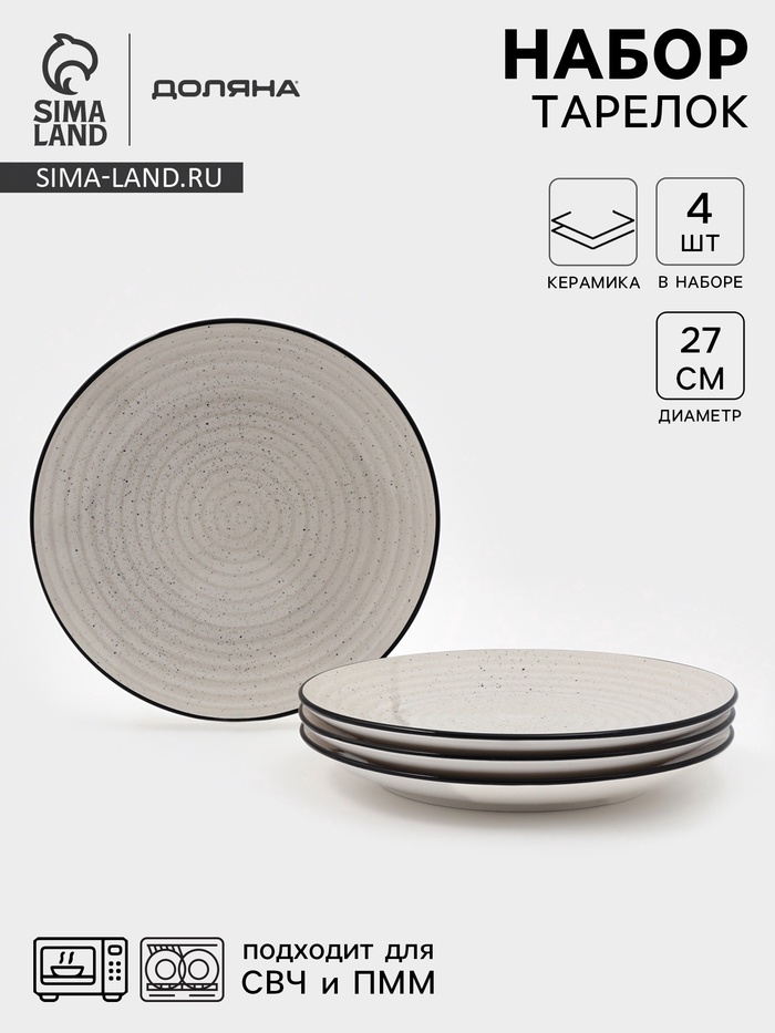 Набор тарелок Доляна Nature, 4 шт., d=27 см, керамика, бежевые