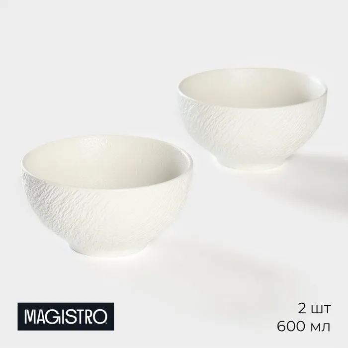 Салатники Magistro Lofty, набор 2 шт.: 600 мл, d=14 см, фарфор, белые