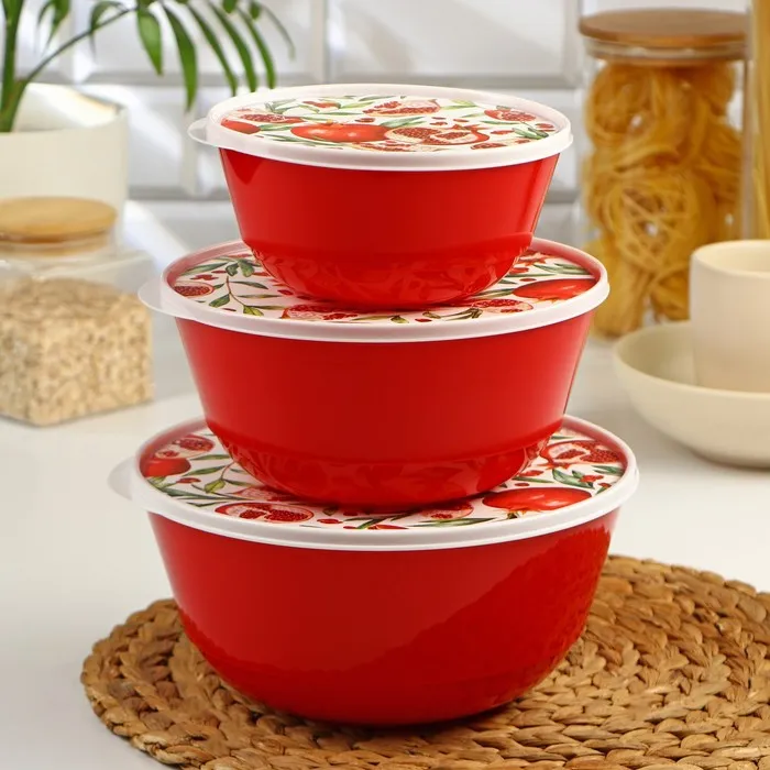 Набор мисок с крышкой Idiland «Гранат», 3 шт.: 1 л, 2 л, 3 л, пластик, красный