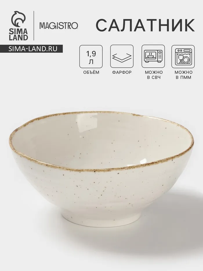 Салатник Magistro Alpine Frost, 1.9 л, 23×22.5×9.9, фарфор, белый