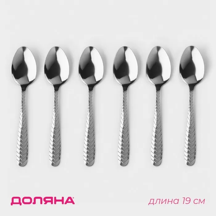 Набор столовых ложек из нержавеющей стали Доляна «Колосок», длина 20.5 см, толщина 2 мм, 6 шт., серебристый