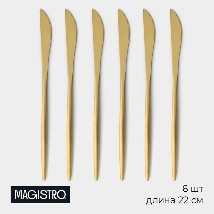 Набор ножей столовых Magistro «Фолк», длина 22 см, 6 шт., нержавеющая сталь, золотистый