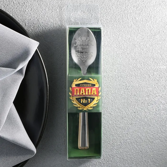 Ложка чайная с гравировкой «Лучший папа», в подарочной коробке, 3×14 см