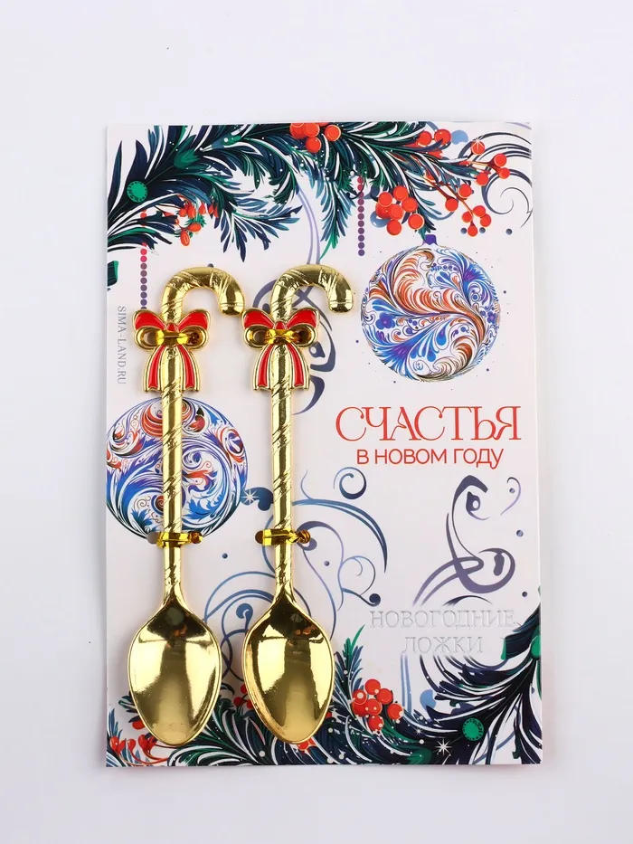 Ложки новогодние чайные с формовой ручкой «Счастья в Новом году», 11×2.1 см