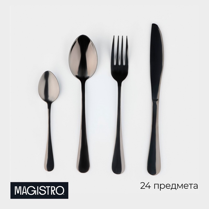 Набор столовых приборов Magistro, 24 предмета, нержавеющая сталь, чёрный