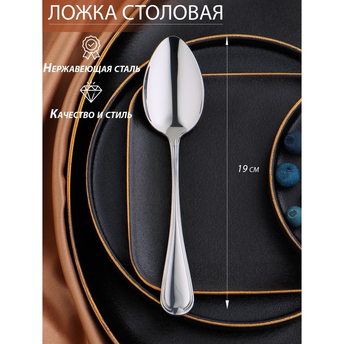 Ложка столовая «Миддлтон», длина 19 см, толщина 3 мм, цвет серебряный