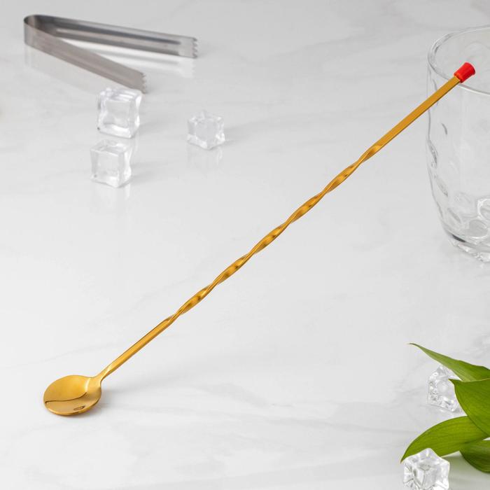Ложка барная с мадлером из нержавеющей стали, длина 33.5 см, цвет золотой