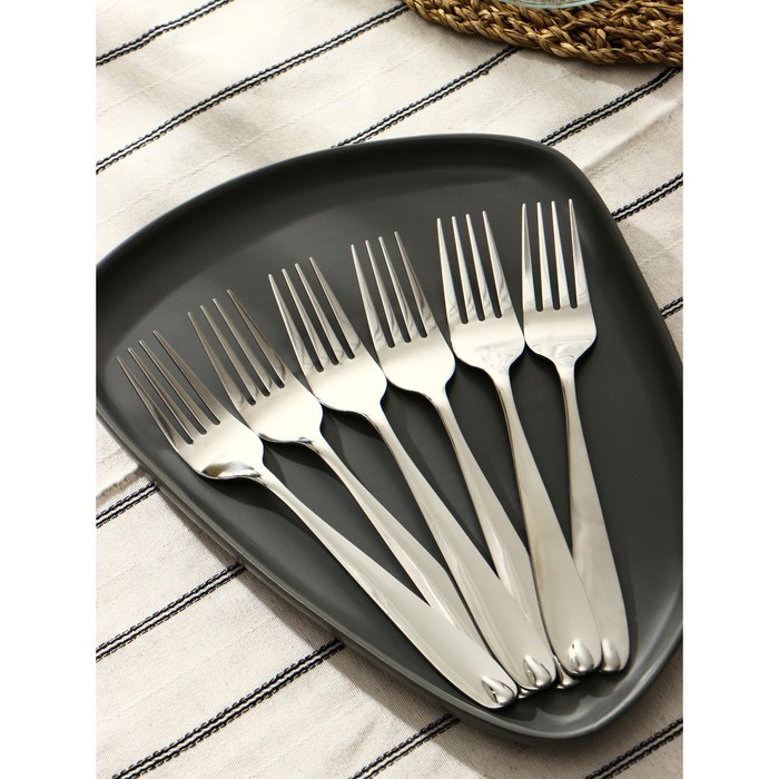 Набор вилок столовых из нержавеющей стали Доляна «Капля», длина 21 см, 6 шт., цвет серебряный