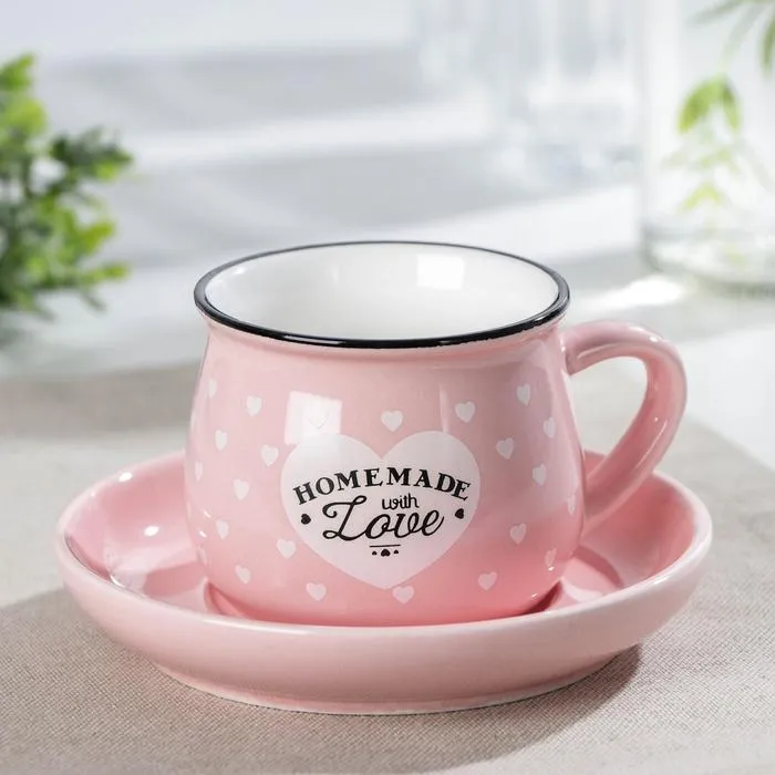 Кофейная пара «Уютный дом», 2 предмета: чашка 180 мл, блюдце d=12,5 см, керамика, цвет МИКС