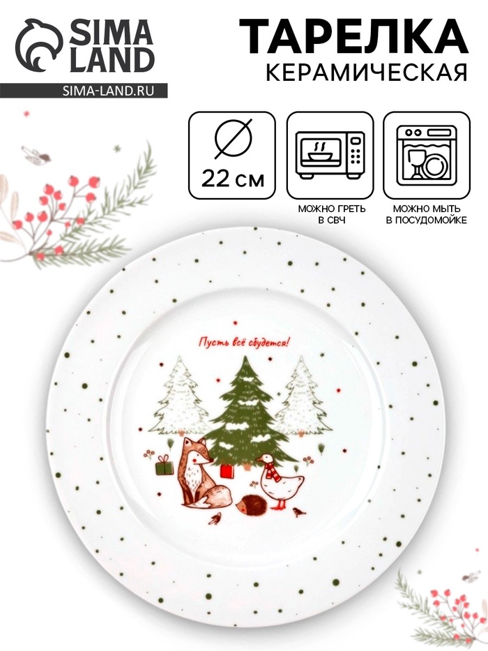 Тарелка плоская на Новый год «Новогодние истории», d=22 см