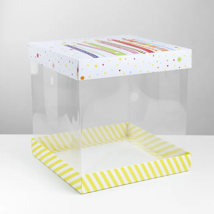 Коробка для торта, кондитерская упаковка «Поздравляю», 15.5 х 8.5 х 8.5 см