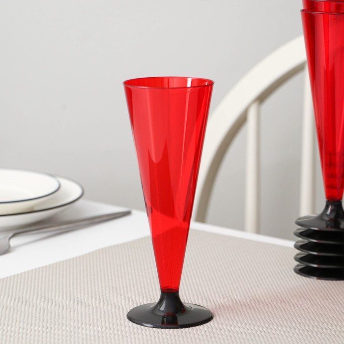 Фужер одноразовый «Конус», 150-180 мл, пластик, красный с чёрной ножкой