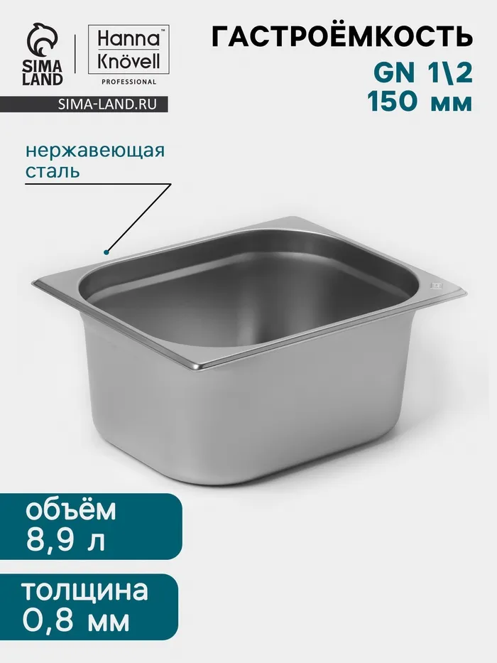 Гастроёмкость GN 1/2 Hanna Knövell, 150 мм, 325×265×150 мм, толщина 0.8 мм, нержавеющая сталь
