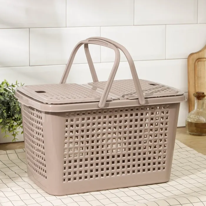 Корзина для пикника Альтернатива «Мини», 35.5×23×20 см, с ручками, пластик, коричневая