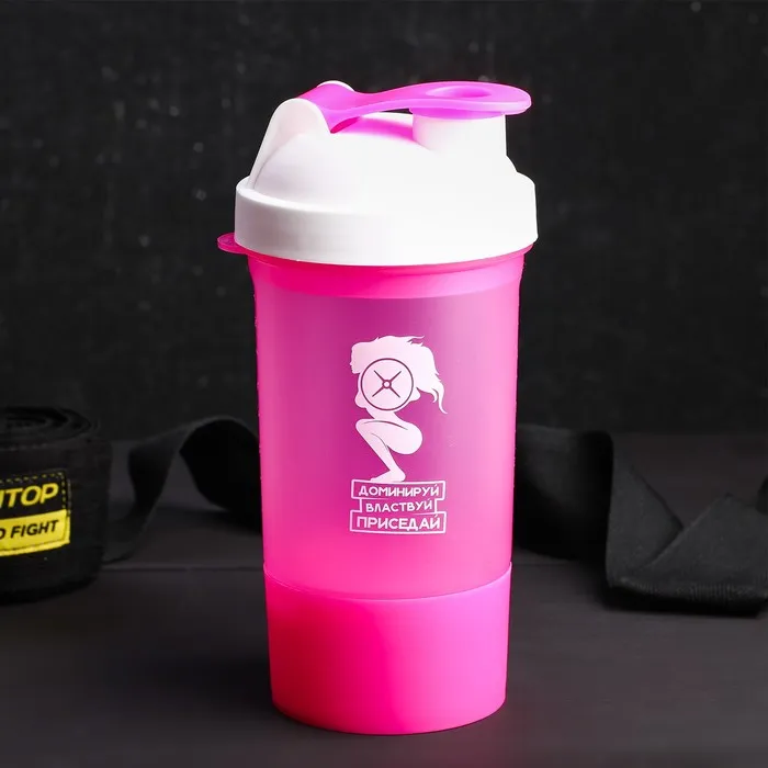 Шейкер спортивный «Доминируй, властвуй, приседай», розовый, с чашей под протеин, 500 мл