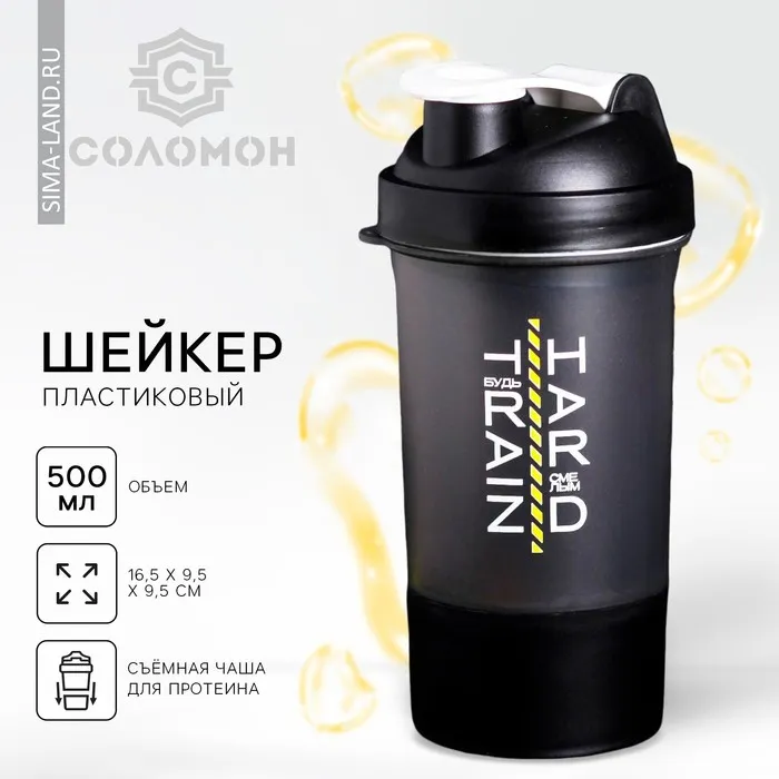 Шейкер спортивный для коктейлей и протеина, с чашей, чёрно-золотой, 500 мл