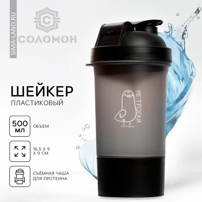 Шейкер спортивный «Не трогай», чёрный, с чашей под протеин, 500 мл
