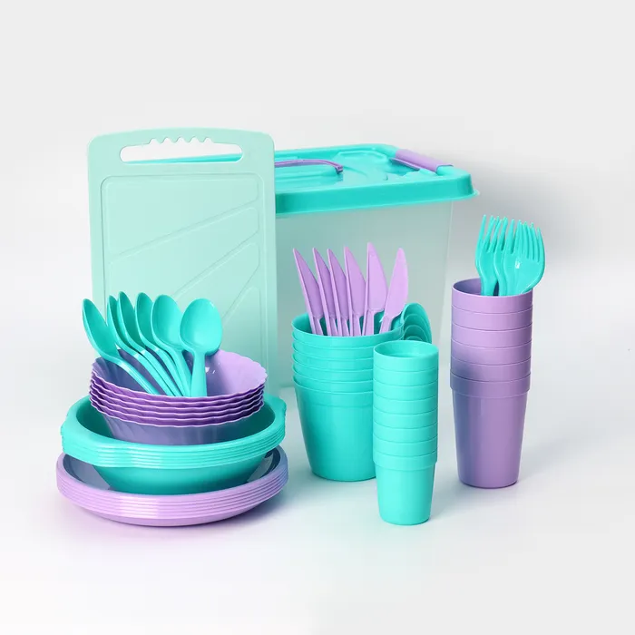Набор посуды для пикника на 6 персон Альт-Пласт «Все за стол – 2», 52 предмета, пластик, МИКС