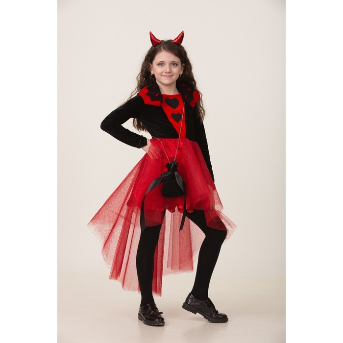 Карнавальный костюм «Дьяволица», платье, ободок с рожками, сумочка, р. 34, рост 134 см