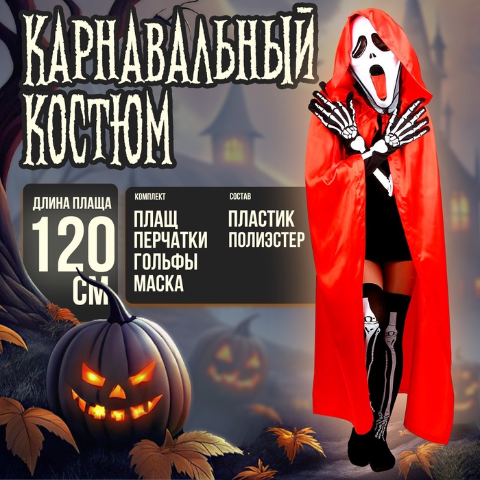 Карнавальный костюм «Хэллоуин красный», плащ 120 см, маска, гольфы, перчатки
