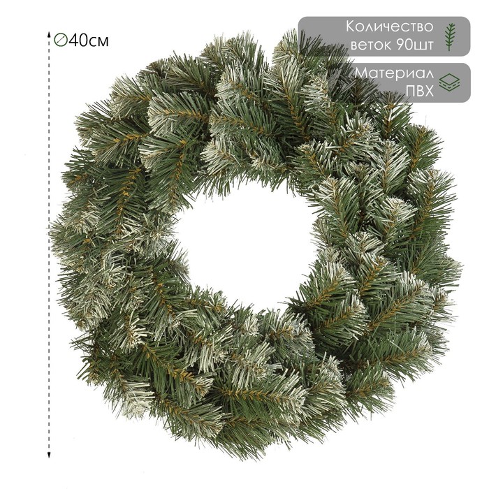 Венок новогодний d=40 см «Праздничный» заснеженный, 90 веток
