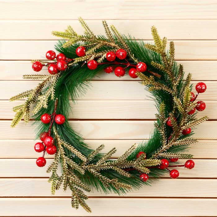 Венок новогодний d=18 см «Зимнее волшебство. Элит», с ягодами, красно-золотой