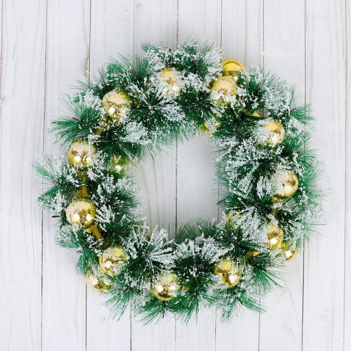 Венок новогодний d=30 см «Зимнее волшебство. Золотистые шарики в инее»